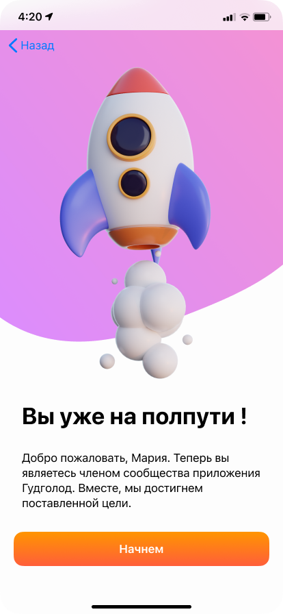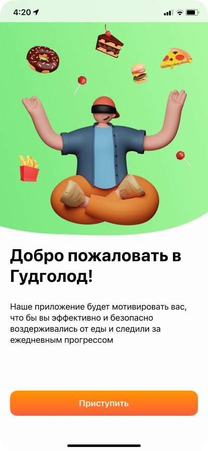 Контекст проекта:Компания «Гудголод» — это команда профессиональных фитнес-тренеров и врачей, специализирующихся на вопросах здорового похудения. Они обратились ко мне с амбициозной задачей: создать мобильное приложение для популяризации метода интервального голодания, который набирает всё большую популярность среди людей, стремящихся к здоровому образу жизни.